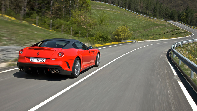 Musíte být suroví, abyste přinutili tyhle gumy zapištět a jet opravdu rychle. Jakmile zapiští, poznáte, že se chováte jako hloupí, nerozumní idioti – a technicky asi jedete pomaleji, než byste jeli, kdyby byly ticho. Vychutnejte si, čeho jsou tyto Micheliny schopné, pracujte s nimi a důvěřujte tomu skvělému předku. GTO je jedno z nejrychlejších přímých aut na světě, rozhodně v suchých podmínkách. Zatáčení je mnohem lepší, než u klasické 599 standard 599 a 599 HGTE – tlumení mi připadá mnohem přirozenější a taky mnohem pevnější. A když to konečně přeženete, ucítíte, jak něžná ruka stabilizačního systému dělá to své. Je to ale jemné, není to facka ani rána, jen jemný závan pomoci, který vyrovnává auto skoro ještě před tím, než si řeknete, že byste to mohli srovnat otočením volantu.