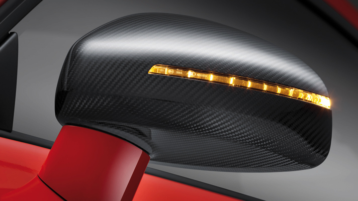 Je zde také vizuální stránka jeho nově nalezené síly. 19-palcové litinové kola, namalované načerno s červenými ráfky, jednolitá mřížka chladiče s vzorem síťoviny, která byla leštěná antracitem diamantu, kryty zpětných zrcátek jsou z karbonového vlákna, a aby se ujistili, že ho bude také dobře slyšet, umístili novou klapku ve výfukovém systému, která ho udělá hlučným.