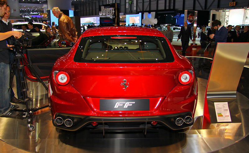 Místo, kde jsme se s tímto v plánu sériovým skvostem mohli poprvé setkat, byla právě Ženeva a to hned ve dvou barvách. Ferrari FF je první svého druhu, které si můžete vzít s sebou každý den a kamkoli. Za tento komfort se ovšem musí platit a jinak tomu není ani u FF. Design exteriéru schytal největší porci této ceny. Kdežto interiéru neubralo na kráse nic. Do sedačky se zaboříte jako do pohodlného televizního křesla, z kterého se vám nebude chtít vylézt. A pokud jste si vyjeli na dovolenou právě na Ženevský autosalón, tak musíte uznat, že jste si museli vystát pěknou frontu pro samotné nakouknutí. Novinářská esa k tomuto autu totiž jen tak někoho nepustí.